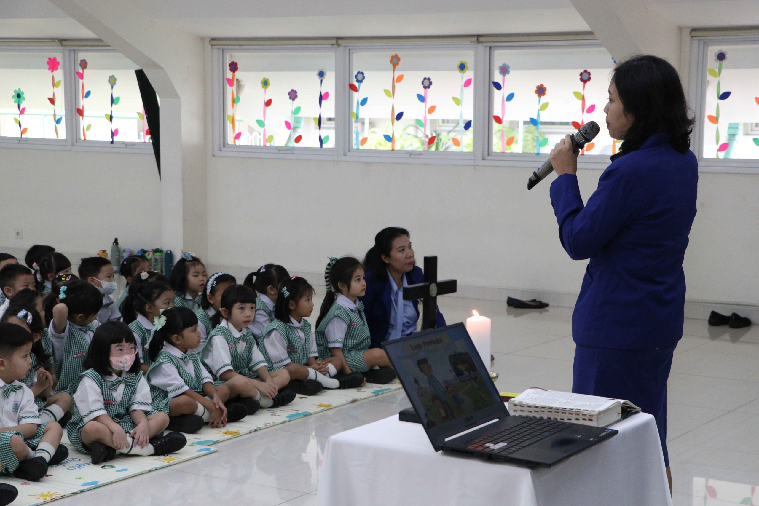 Salah satu bagian yang menarik dalam ibadat adalah penampilan drama singkat oleh para guru. Drama ini mengangkat tema kejujuran dan rendah hati, sebuah nilai yang juga dihidupi oleh Santo Carlo Acutis dalam kesehariannya. Melalui alur cerita yang sederhana, para guru menggambarkan betapa pentingnya bersikap jujur, baik kepada diri sendiri maupun kepada orang lain. Anak-anak tampak antusias dan terhibur, sekaligus mendapatkan pesan moral yang bermakna.